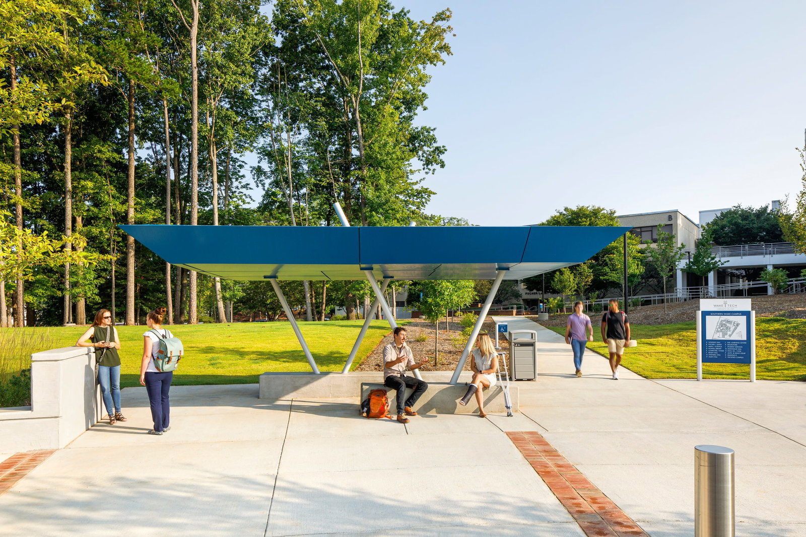 In the last year, Wake Tech has begun the process of developing this plot of land in eastern Wake County with three design & construction projects — the Central Energy Plant Facility, the Public Safety Center, and the General Education 1 and Student Services Building (GEB). To support these tenets and fulfill the Campus mission of Connection, BSA is designing the new GEB. As the third facility on this new Campus, the GEB will be the hub for users and visitors because of the centralized administrative services that will be housed in the building. Reinforcing this concept is the location of the GEB along the northern side of the Campus Helix. Framing the green space to the south, the GEB will be the backdrop and face for gatherings on the outdoor Helix Green.