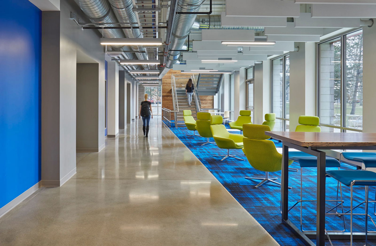 - Large windows maximizing daylighting and campus views