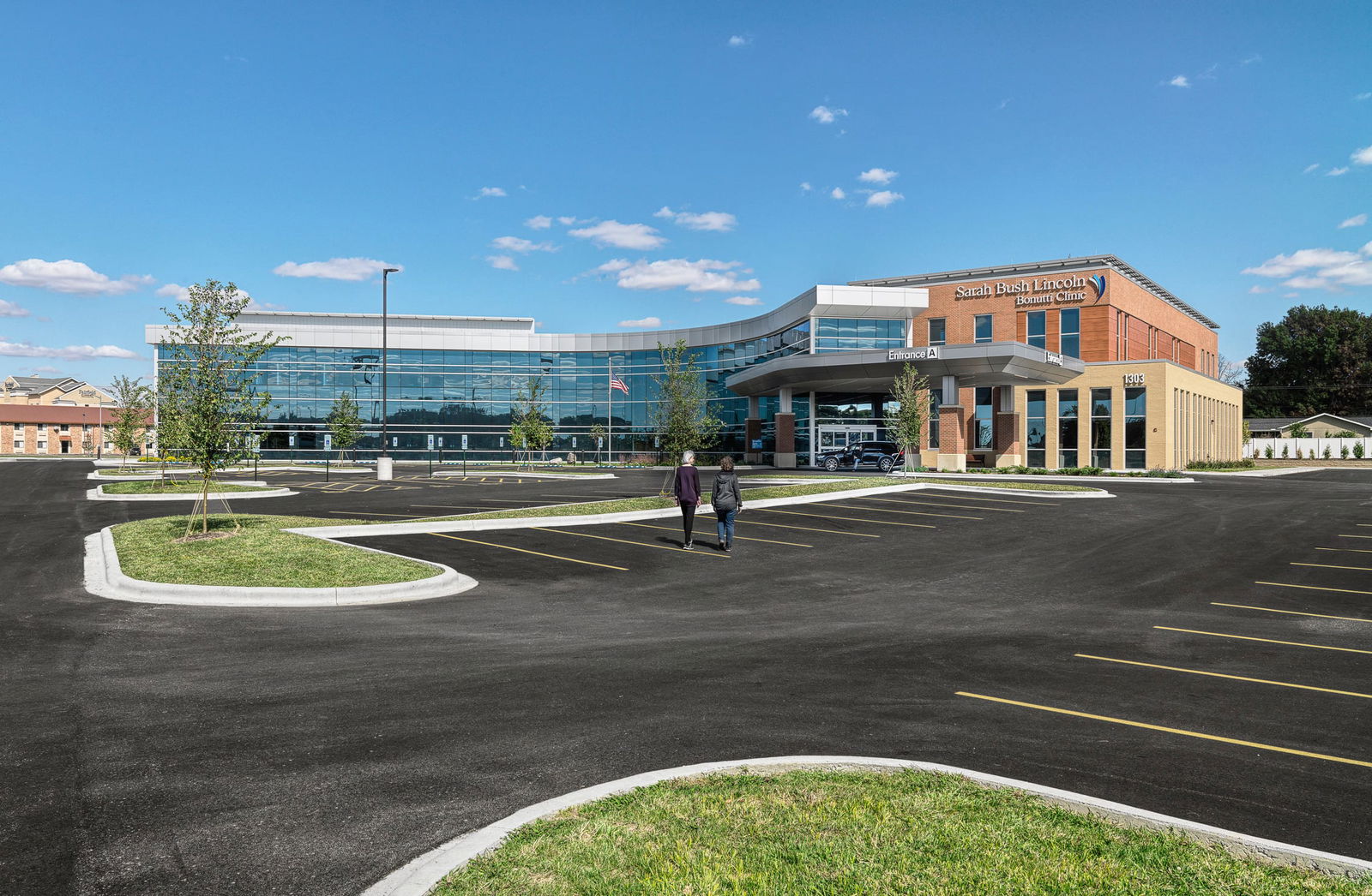 The Sarah Bush Lincoln (SBL) Bonutti Clinic is a freestanding, two story medical office building. This outpatient facility is strategically located on the south side of Interstate 70 in Effingham, Illinois. The building’s positioning was vital due to the site’s sunken nature, which initially made it difficult for the structure to be visible from the interstate. In response, BSA’s expert architects developed a comprehensive site grading plan. They successfully requested a variance to local ordinances, raising the building’s elevation for improved visibility.