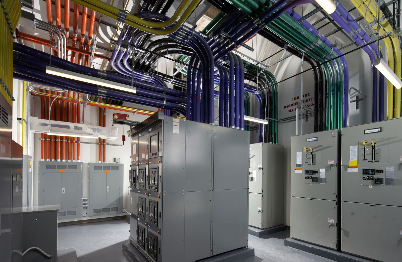 • Code-compliant electrical distribution with segregated normal power, critical branch, equipment branch, and life-safety branch circuits